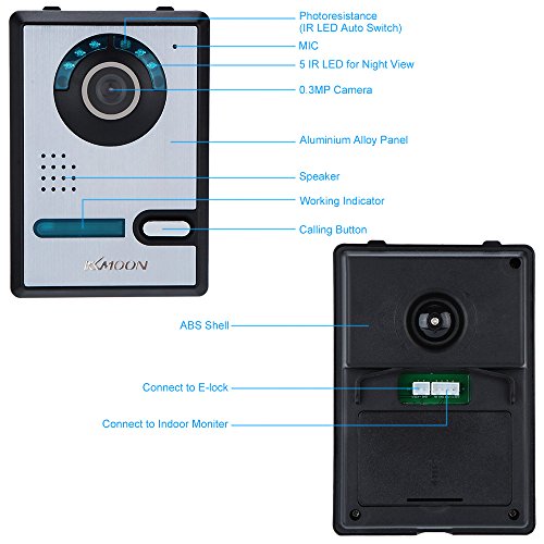 - ★【KKmoon Videoportero】Con Pantalla Táctil TFT LCD a Color de 7 ", alta definición y sensibilidad. Soporte funciones de intercomunicación de dos vías, desbloqueo, conversación visual, vigilancia en tiempo real, impermeable y visión nocturna.