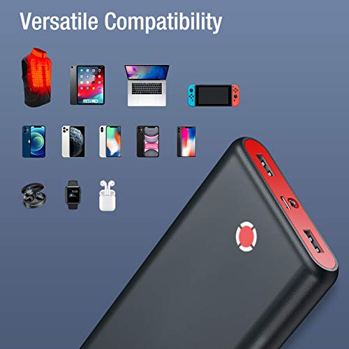 [Versión Mejorada] POWERADD Pilot X7 20000mAh Power Bank Cargador Móvil Portátil Batería Externa Carga Rapida con 2 Salidas USB 3.1A para Dispositivos Inteligentes y Más, Color-Negro y RojoPower Bank 20000mAh