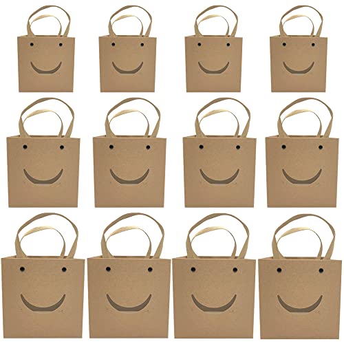 12 Piezas Cajas para Chuches, Cajitas de Carton para Chuches, Caja Papel Kraft Regalo, Smiley Cuadrado Bolsas Regalo para Galleta, Fiesta Cumpleaños, Boda, Baby Shower, Navidad, Marrón