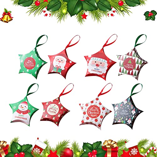 16 Pcs cajas de dulces navideñas,Caja de Dulces con Cintas,Cajas de Cartón Kraft Papel Caramelo,Cajas de Regalo para Galletas de Dulces,Decoración del árbol de navidad
