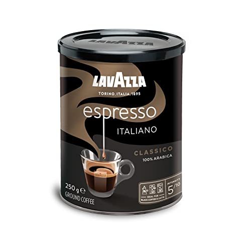 Lavazza, Espresso Italiano Classico, Café Molido, Notas Florales y Afrutadas, 100% Arábica, Intensidad 5, Tueste Medio, Lata de 250 g