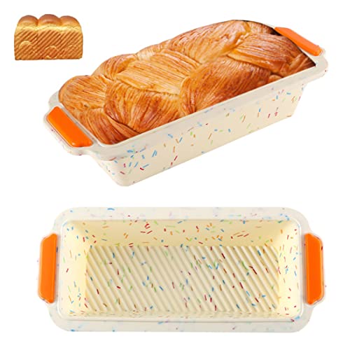 Lsydgn Bandeja de Horno Mini Baguette Molde para Tostadas de Multifuncional con Revestimiento Antiadherente Panadería rectángulo Moldes para Tartas caseras Pan, Pastel de Carne y Quiche (Color Crema)