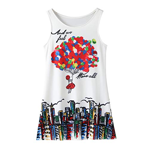 YWLINK Verano NiñAs Vestido, Sin Mangas Mezcla De AlgodóN con Estampado Digital Falda Larga Vestido Casual Vestido De Fiesta Playa Lindo Bien Parecido Regalo(Multicolor,5-6 años/120)