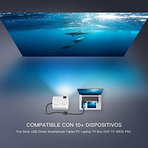 - Compatible con Múltiples Dispositivos: Compatible con Smart TV, Amazon Fire TV Stick, ChromeCast, PC, ordenador portátil, reproductor de DVD Blu-ray, tarjeta Micro SD, memoria USB, reproductores multimedia (música, imágenes, video, TXT), Smartphone. El proyector no tiene Wifi incorporado (requiere un Dongle externo), (no incluido dongles).
