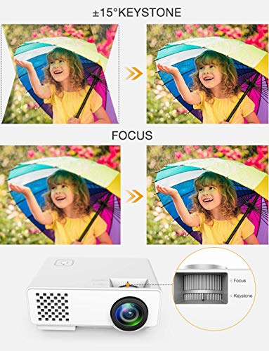 - 【2 x MAYOR RESOLUCIÓN】 Equipada con resolución nativa HD 720p y una resolución admitida de 1080p, relación de contraste: 2,000:1, soporta corrección de distorsión trapezoidal manual de ± 15 grados, creando una imagen nítida y detallada de alta definición sin pixelación ni distorsión , 2 veces mayor resolución que la mayoría de los proyectores compatibles con 480P y 1080p