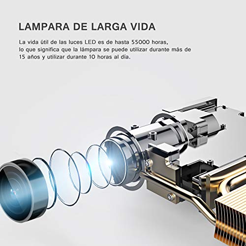 - 【Calidad y Servicio Garantizados】La vida útil de la lámpara es de más de 55000 horas y cada proyector será examinado cuidadosamente antes de ser enviado. Ofrecemos una garantía de 3 AÑOS 100% DE DEVOLUCIÓN DEL DINERO y un servicio posventa de 365 días.