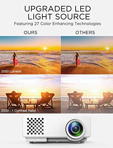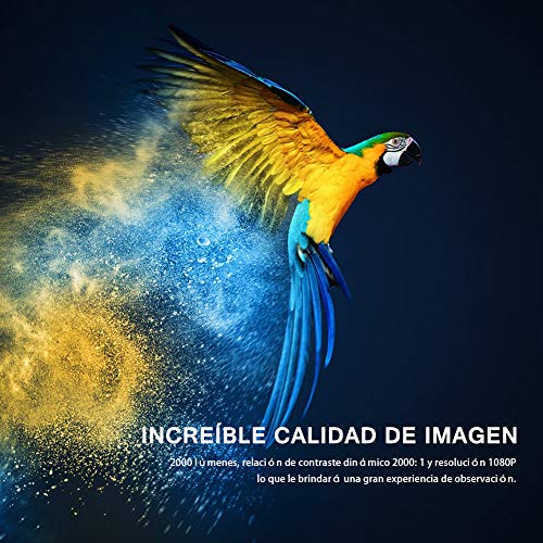 - 【IMÁGENES DE ALTA CALIDAD】 Este mini proyector es 70% más brillante y 50% más nítido que otros proyectores similares; adopta 27 tecnologías de mejora del color que proporcionan imágenes claras y de calidad superior. Con un brillo de 2000 lúmenes, los colores son intensos y las imágenes muy nítidas en la oscuridad. Si está buscando una experiencia de cine en casa, este proyector es ideal para usted.