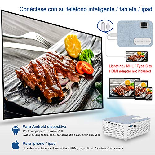 - ❤【EXPERIENCIA VISUAL AUDIO SUPERIOR】Este videoproyector Bluetooth casero con lente gran angular, muestra detalles cristalinos. Dimensiones de la proyección: 30-200 pulgadas. Construido en el potente altavoz Hi-Fi de 3W con un sistema de audio SRS, que produce una increíble calidad de sonido para uso interno y externo y ofrece una experiencia atractiva e impresionante.