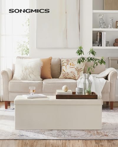 SONGMICS Baúl, Puff, Taburete para Almacenaje Plegable, Carga máxima de 300 kg,...
