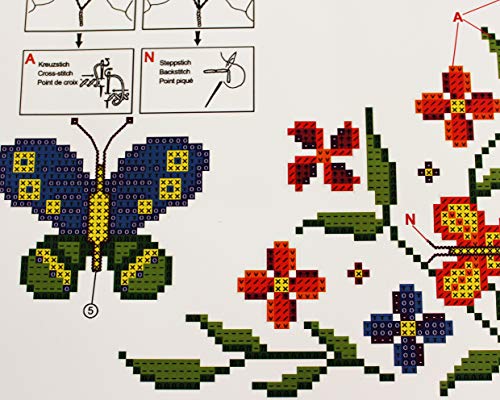 - Kit de punto de cruz para mantel (80 x 80 cm), diseño de mariposas, punto de cruz predibujado.
