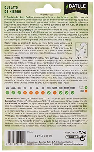 - Nutriente Fundamental para las Plantas: Corrector de carencias de hierro. El hierro es esencial en la síntesis de clorofila y en numerosas funciones vitales de las plantas. Nuestro quelato de hierro ecológico garantiza un óptimo desarrollo y mayor productividad de tus cultivos