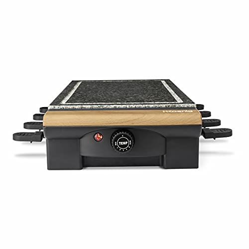H.Koenig RP328 Raclette 8 Personas, Plancha de Piedra Natural, 1400 W, Acero Inoxidable, Madera, 8 Sartenes Antiadherentes