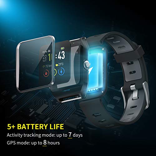 - ✨【GPS Location】El smartwatch HolyHigh se adopta el Sistema de Localización de Dual-satélite GPS-GLONASS para rastrear su entrenamiento con GPS preciso y rápido. Se puede separar del teléfono móvil para uso independiente. El reloj puede guardar datos durante 6-7 días (dependiendo del tamaño de los datos diarios). Los datos guardados por el reloj se sincronizarán con el móvil una vez que se conectan.