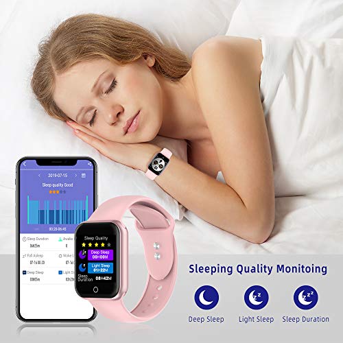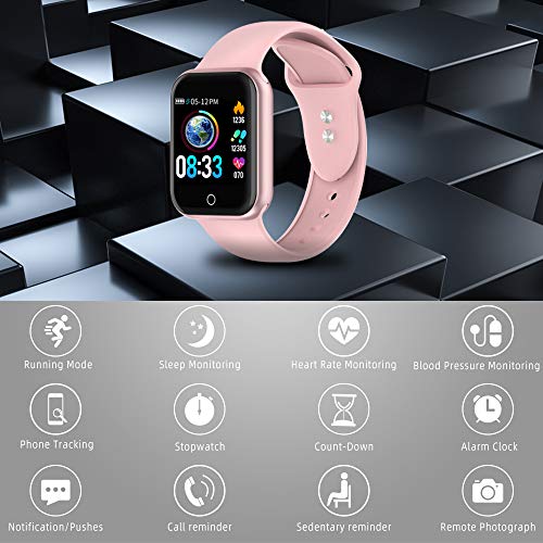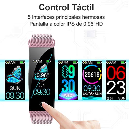 - 【Smartwatch Multifuncional】Disponibe con muchas funciones los siguientes:monitor del ritmo cardíaco, sueño y calorías, presión arterial, podómetro, cronómetro, control de cámara, alerta sedentaria, impermeable 67, notificaciones de SMS y llamada, Además tiene un función femenina, puede registrar datos del período de la menstruación, el embarazo preparado, el embarazo y la crianza. Los funciones para que abtengan un buen salud.