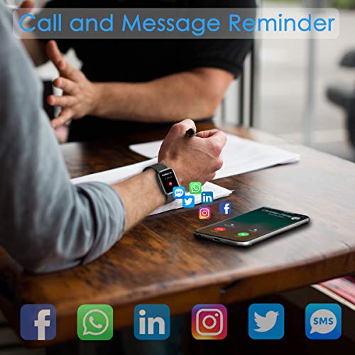 - 【Notificaciones Inteligentes y Alerta Sedentaria 】Nunca perderá una llamada o un mensaje importante. Cuando tengan las llamadas o mensajes de SMS, Facebook, WhatsApp, Twitter, Instagram ect, el smartwatch puede avisarle por vibración. Además, este reloj inteligente también dispone de aerta de sedentarismo, puede recordarle que se relaje de vez en cuando según su configuración para ayudarlo a mantener su cuerpo en buen estado.