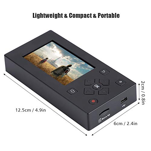 - 【Diseño: una mano】: tamaño pequeño y compacto para llevar. Y el otro AV Recorder es una interfaz mini USB incorporada para conectar la alimentación, cargar y transferir datos.