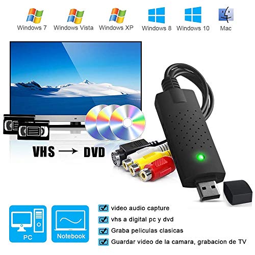 - USB 2.0 Capturadora De Video Y Audio: DIWUER Convertidor de Audio / Video puede tocar a VHS VCR DVD y otros dispositivos a través de RCA o S-Video, para VHS digital y edición de video.