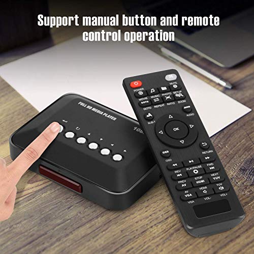 - Con una interfaz alta velocidad USB 2.0 interfaz SD/MMC para leer tarjeta SD y disco duro USB y jugar directamente a la TV, LCD y CRT. Salida de vídeo rica interfaces, las interfaces HDMI1.3 real digitales, YPrPb, AV.