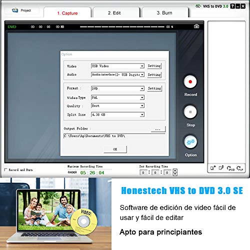 - 【Un botón para operar】: para convertir cintas de video y cintas de videocámara a formato digital directamente. No se necesita computadora u otros dispositivos. Formatos de video compatibles: reproductor de cintas / cámara de cinta / VHS / VCR / DVD / DVR / Hi8 / consolas de juegos, etc. Y formatos de audio: reproductor de CD / reproductor de DVD / reproductor de cassette / reproductor de grabación / teléfono móvil