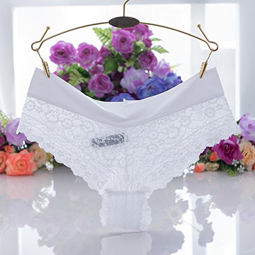 DRESHOW 6 Piezas Mujeres Encaje fino Ahuecado T Volver Cintura baja Seda de hielo Sexy Tanga descarada Bragas transparentes