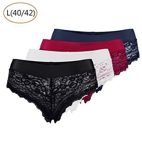 ZeWoo 4 Piezas Bragas Pantalones de Mujer sin Costuras Señoras Ropa Interior Secret Hug Sexy Low Rise Calzoncillos de Encaje Bikini Bragas (L)