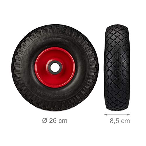 Relaxdays Set de dos ruedas de carretilla, Neumático de goma 3.00-4, Eje...