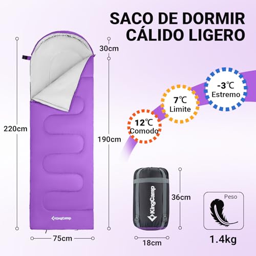 KingCamp Oasis Serie - Saco de Dormir con cabecero (220 x 75...