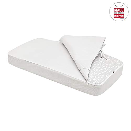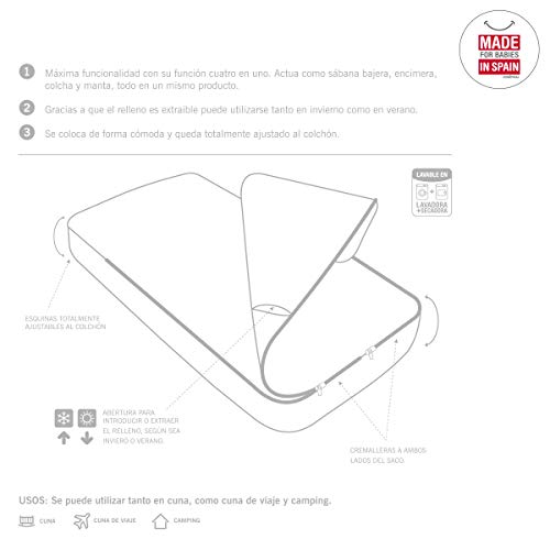 - El saco se ajusta al colchón y se cierra con cremalleras para que el niño siempre esté tapado.