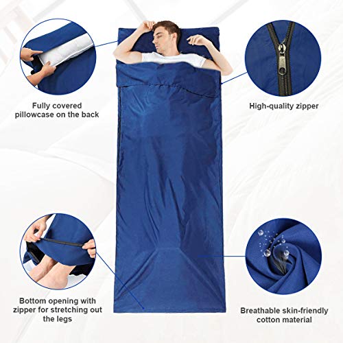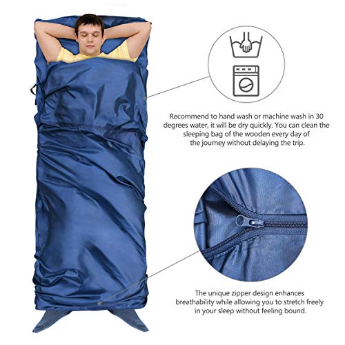 - HIGIÉNICO: El forro del saco de dormir le protege de camas antihigiénicas o incluso sucias. Ideal para mochileros, acampar, hacer senderismo de cabaña en cabaña y dormir en albergues. También adecuado para personas alérgicas.