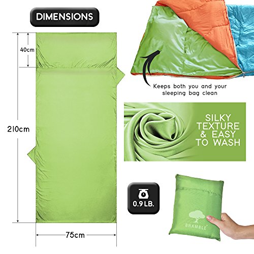 - Textura Sedosa y Suave: Aislamiento hecho de microfibra 100% poliéster lavable a máquina. El bolso de dormir Bramble se siente muy suaves cuando entran en contacto con la piel, lo que asegura que no haya ninguna incomodidad mientras duermes.