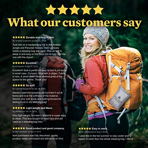 - PEQUEÑO, COMPACTO y ULTRALIGERO: Nuestra sábana de viaje ligera de microfibra tiene 310 g de peso y es extremadamente pequeña (18 x 9 cm). El forro del saco de dormir de microfibrees muy espacioso (220 x 90 cm) y ofrece mucho espacio para un sueño reparador. Bolsa de malla ligera incluida.