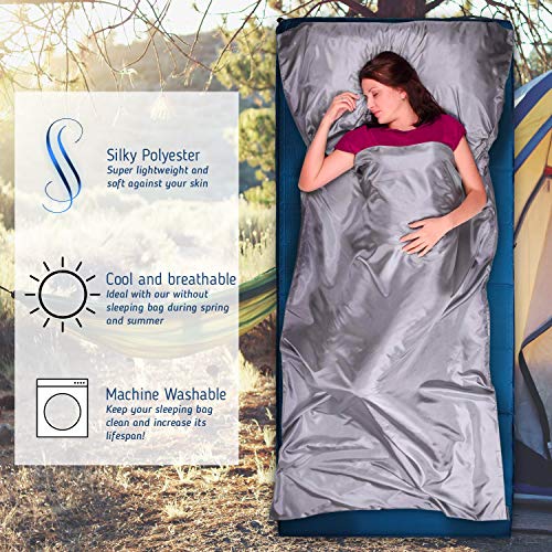 - SUAVE: El forro de saco de dormir está fabricado en poliéster 100% con una textura sedosa que lo hace muy suave y cómodo en contacto con la piel.