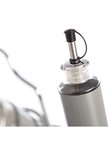 - Calidad prémium: hecho de vidrio duradero de grado alimenticio y boquilla de vertido de acero inoxidable, nuestro dispensador de aceite de oliva está diseñado para ofrecerte una vida de cocción segura y saludable. Sin goteos, derrames o accidentes con estas botellas.