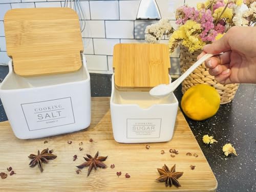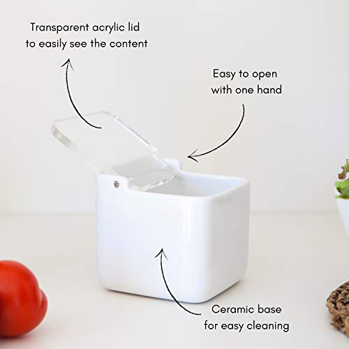 KOOK TIME Salero de Cocina de Cerámica cuadrado con tapa de acrílico...