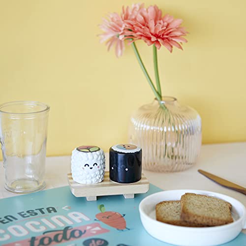 Balvi Set Sal & Pimienta MrWonderful Sushi con Base de Madera Comida...