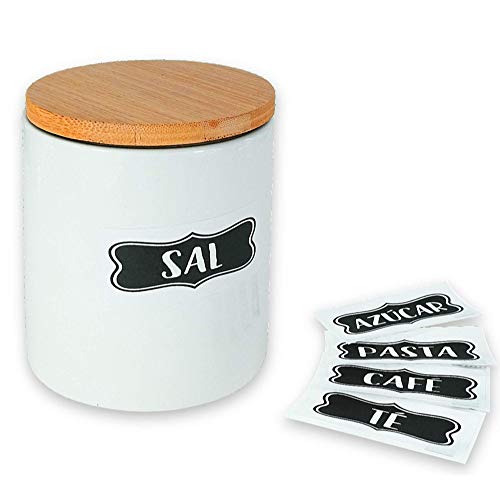 HAND-PRO Salero cerámica Blanco Salero y Azucarero de Cocina (+5 Pegatinas) Salero...