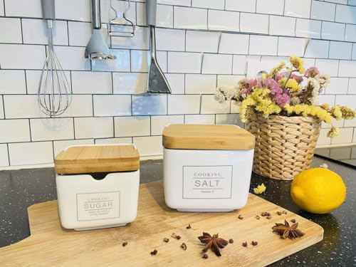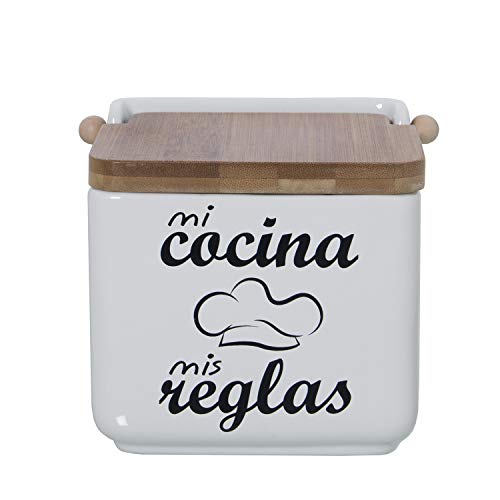 DRW Salero Original cerámica Cuadrado con Tapa bambú 12x12x12 cm (Mi Cocina...