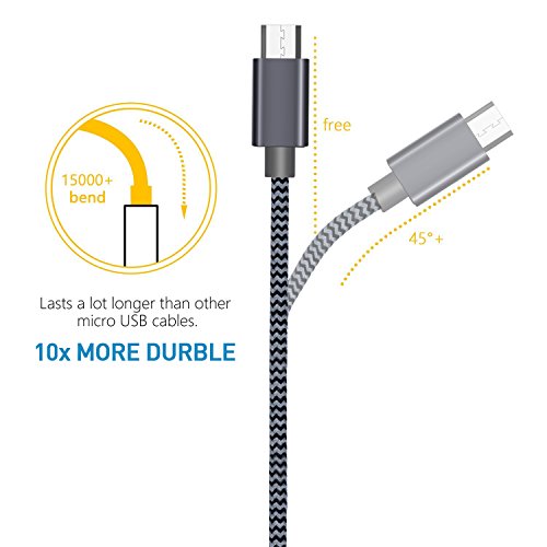 - [Mayor durabilidad] AVIWIS cable micro usb han pasado más de 8.000 pruebas plegable del cable, el exterior de nylon trenzado es bastante robusto y flexible. El conector de aluminio es lo suficientemente robusto como para que se mantenga en buena condición por mucho tiempo y promete conexiones perfectas.