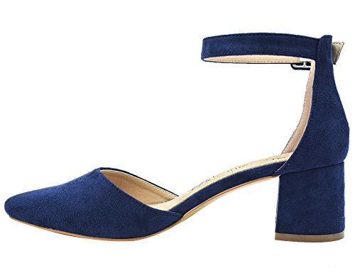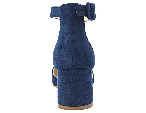 Greatonu Mujer Modo Fiesta Zapatos de Tacón Azul Diario Sandalias de Hebilla de Cierre
