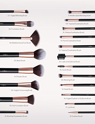 1Anjou Brochas Maquillaje Comésticos 20 Piezas, Set Brochas Maquillaje para Ojos, cejas, base de maquillaje, polvos, crema
