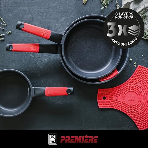 BRA Premiere- Set de 3 sartenes, aluminio fundido antiadherente, aptas para todo...