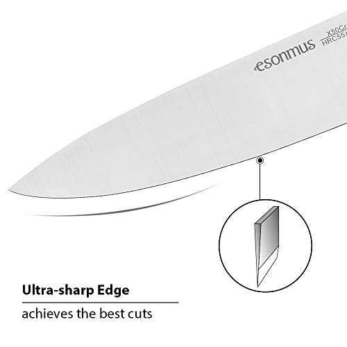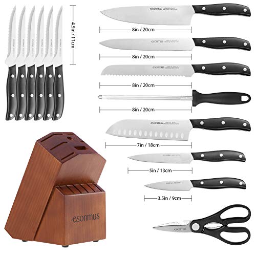 esonmus Cuchillos de Cocina Profesionales, 15 Piezas Juego de Cuchillos de Cocina, Hecho de Acero Alemán X50Cr15 Incluye Afilador de Cuchillos, Tijeras, Bloque de Madera