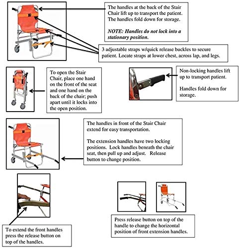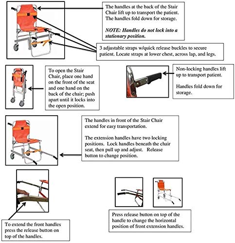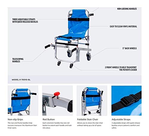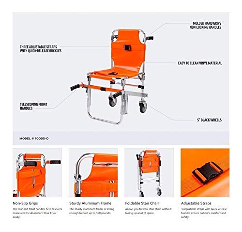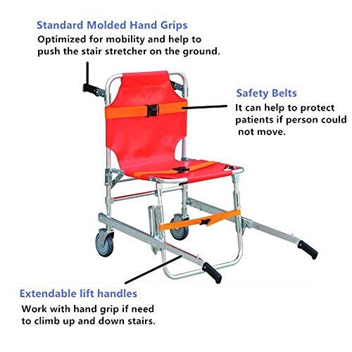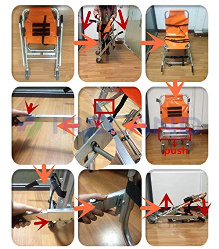 - FOLDABLE Y USO - Práctica para el plegado dentro y fuera de la silla de la escalera, por el espacio o una ambulancia que ahorra espacio.EMT ayudar a mover los pacientes de manera segura y eficiente a través de espacios reducidos.