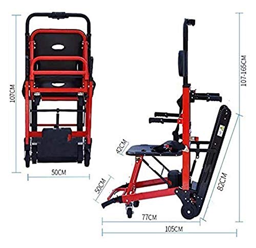 - PROFESIONAL STAIR SILLA - doblado hacia abajo tamaño: 90 × 51 × 91 cm;Tamaño doblado: 90 × 17 × 59 cm;Peso: 12 kg / 26.4 lb 160 kg / 352 lb ayudar a los pacientes Evacuar de manera segura para subir o bajar escaleras.