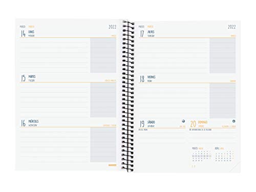 - Interior: Semana vista apaisada. Visión de la semana completa en apaisado que permite la escritura natural.