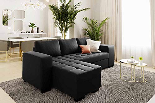 Confort24 Chloe Sofá Cama 3 Plazas Chaise Longue Reversible com 2 Puffs...