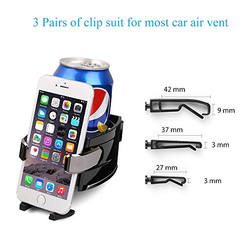 - Ventajas: este Soporte Vaso Coche es muy estable, no deja caer la copa. Además, puede mantener su bebida caliente o fría cuando funciona el aire acondicionado; fácil de instalar y quitar, solo presione el clip de resorte para montarlo de forma segura La salida de aire.