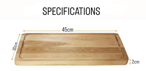 - ALTA CALIDAD Y ULTRA DURADABLE. Hecha de roble Premium duro, de grano fino, 100%, esta tabla de cortar hace un trabajo excelente para sus necesidades de corte, corte y rebanado. Las tablas de cortar de roble también son conocidas por ser "amigables con los cuchillos" y conservan la calidad de sus cuchillos.