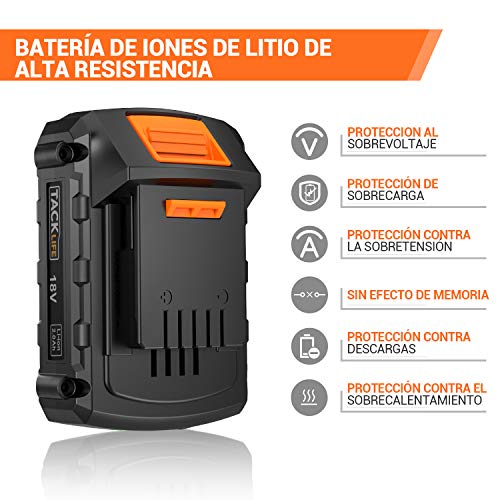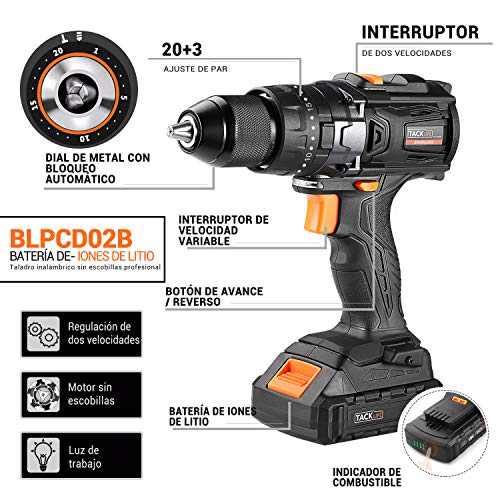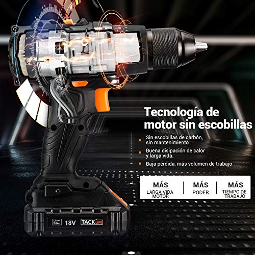 TACKLIFE Taladro Atornillador Eléctrico, 18V Taladro Percutor a bateria sin escobillas, 65N.m...