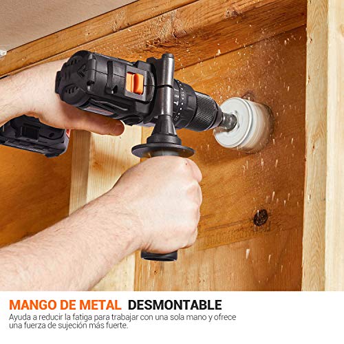 - Taladro de Impacto - Basándose en un circuito de control inteligente de alta precisión, el par de salida del taladro eléctrico puede alcanzar los 60 Nm; Admite 2 modos diferentes de trabajo: puede perforar agujeros en paredes de ladrillo, paredes de yeso, metal, madera, plásticos y etc, la profundidad de su perforación se limita a: madera 34 mm, metal 13 mm, pared de ladrillo 13 mm